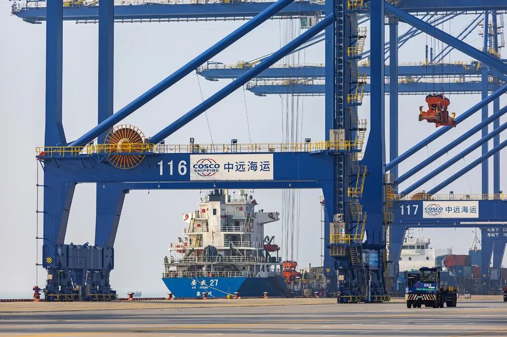 圖為1月16日的洋浦國(guó)際集裝箱碼頭。(中國(guó)外文局歐亞中心記者段崴 攝)