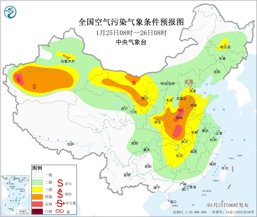 中國網(wǎng)1月23日訊 據(jù)中央氣象臺消息,23日至25日,華北中南部、黃淮中西部、汾渭平原、四川盆地等地大氣擴散條件較差,有輕至中度霾天氣。25日,受冷空氣影響,華北中南部霾天氣減弱或消散。此外,24日至25日,受冷空氣大風影響,西北部分地區(qū)有沙塵天氣。