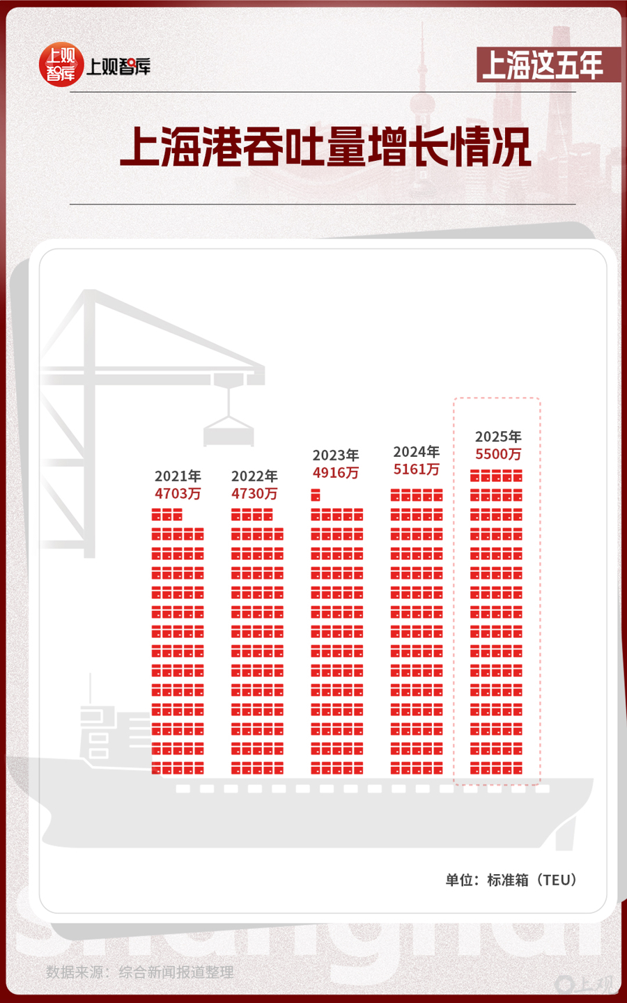 2024年,上海浦東國(guó)際機(jī)場(chǎng)首次排名全國(guó)旅客吞吐量第一,榮登中國(guó)最繁忙的機(jī)場(chǎng)。也是在這一年,上海港成為全球首個(gè)年吞吐量超過(guò)5000萬(wàn)標(biāo)準(zhǔn)箱的世界大港。