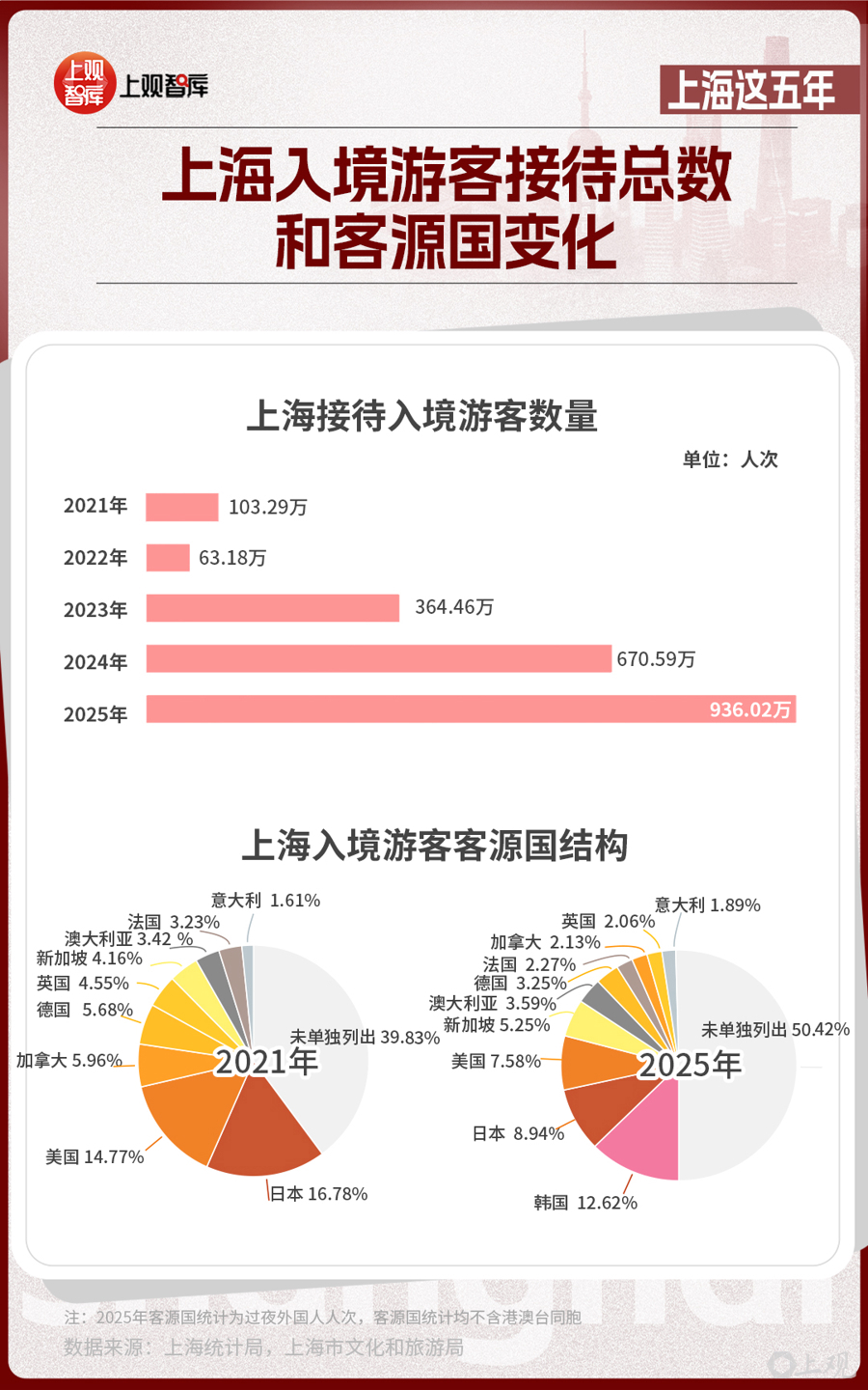開放的上海,在全球的魅力日益提升。乘著免簽政策東風(fēng),上海在入境游賽道走出強(qiáng)勁上升曲線,“中國(guó)入境游第一站”吸引力持續(xù)攀升。去年全年,上海接待入境游客總量936.02萬(wàn)人次,創(chuàng)下歷史新高,成為全球游客感知中國(guó)文化、體驗(yàn)都市魅力的首選目的地。