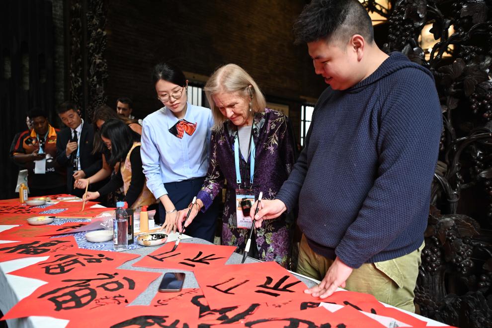 2月6日,亞太經(jīng)濟合作組織(APEC)2026年第一次高官會及相關會議的部分與會代表在廣州陳家祠體驗中國書法。 新華社記者 鄧華 攝