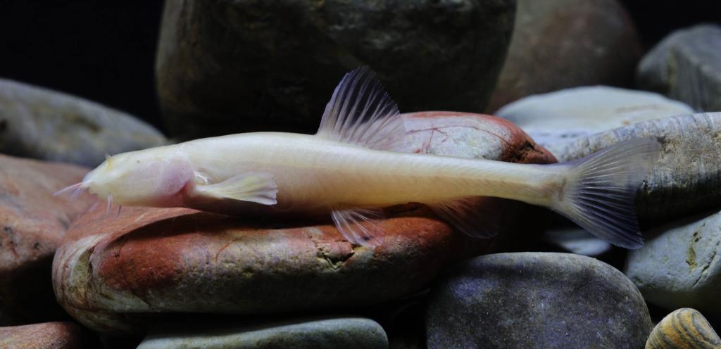 “納雍盲高原鰍”被發(fā)現(xiàn)于貴州省納雍縣張家灣鎮(zhèn)的一處地下溶洞中。作為典型的穴居魚類,該物種演化出鮮明的洞穴適應(yīng)性特征:個體體形偏小,鱗片已完全退化消失,身體呈透明淡粉色;眼睛高度退化,部分個體僅殘留細小的黑色眼點;同時,其附肢適度延長、感覺系統(tǒng)發(fā)達,以此適應(yīng)黑暗、封閉的地下環(huán)境。通過形態(tài)學對比與分子生物學檢測證實,它被確認為從未被記載的新種。