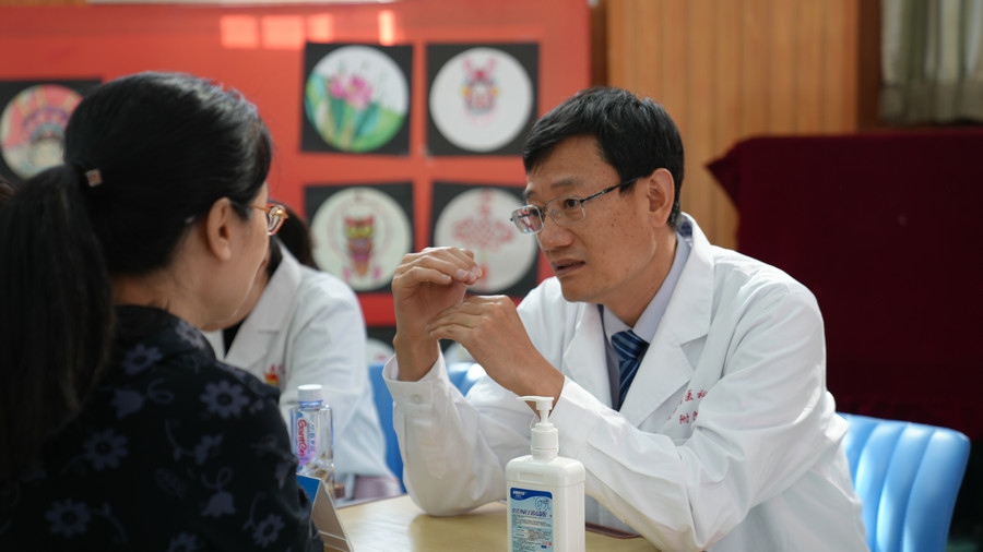 義診現(xiàn)場,前來咨詢就診的女教職工朋友有序候診,其中不少老師拿著體檢報(bào)告和既往病歷來到專家臺前進(jìn)行詳細(xì)咨詢。此次義診,內(nèi)蒙古醫(yī)科大學(xué)附屬醫(yī)院醫(yī)療烏蘭牧騎派出了神經(jīng)內(nèi)科、消化內(nèi)科、心血管內(nèi)科、骨科、甲乳外科、泌尿外科、胸外科、超聲科、中醫(yī)科、婦產(chǎn)生殖醫(yī)學(xué)科、康復(fù)醫(yī)學(xué)科等11個專業(yè)的19位專家及醫(yī)護(hù)骨干,為廣大園丁提供查體、疾病咨詢和健康科普服務(wù)及測量血壓、把脈問診、超聲檢查、心電圖檢查、早期胃癌篩查、早期肝癌篩查等檢測項(xiàng)目。附院專家耐心細(xì)致地詢問病史、解答疑問,并根據(jù)不同的病癥和個體差異給予個性化的診療建議。同時對職業(yè)女性常見的消化系統(tǒng)疾病、甲狀腺疾病、乳腺疾病、婦科疾病、腰椎間盤突出等疾病開展了專業(yè)、細(xì)致、通俗的健康科普。
