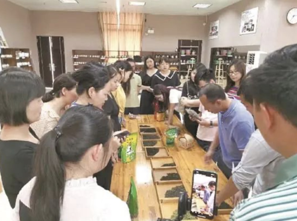 廣東科貿(mào)職院高職擴(kuò)招茶藝班學(xué)生在學(xué)習(xí)識(shí)別茶葉