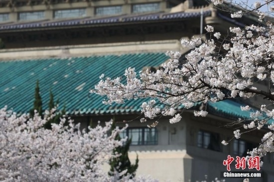 武漢大學(xué)對(duì)社會(huì)公眾開(kāi)放賞櫻首日 櫻花樹(shù)下人潮涌