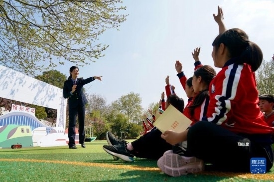 3月31日,中國鐵路上海局集團(tuán)有限公司徐州站的青年志愿者在徐州市漢橋小學(xué)為學(xué)生們講解鐵路安全知識。