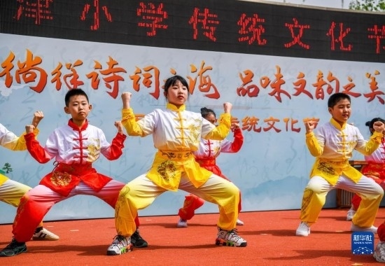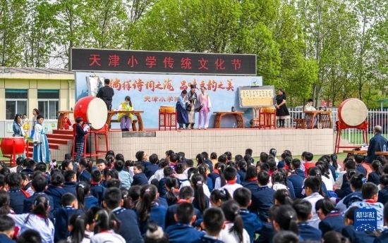 當(dāng)日,以“徜徉詩詞之海,品味文韻之美”為主題的傳統(tǒng)文化節(jié)在天津小學(xué)舉行。學(xué)生們在老師的指導(dǎo)下參與國學(xué)朗誦、京劇選段表演、書畫展示等活動(dòng),感受傳統(tǒng)文化的魅力。