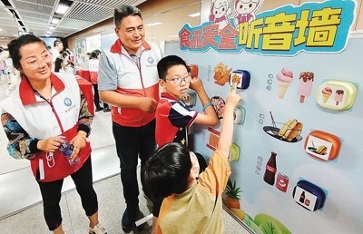 日前,福建省廈門市婦聯攜手相關部門舉辦“快樂‘六一’ 安全童行”2023年“六一”體驗式生命教育趣味游園活動。圖為小朋友們在參加食品安全聽音墻活動。 徐 林攝