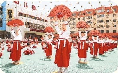 5月30日,甘肅省定西市安定區(qū)中華路幼兒園的小朋友們在表演節(jié)目,在快樂的氛圍中迎接兒童節(jié)。 王克賢攝(新華社發(fā))