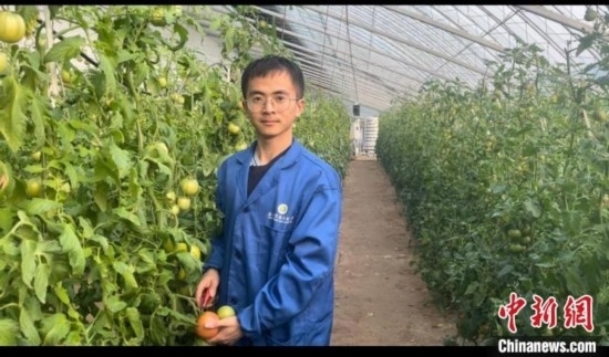 大多數(shù)時間,這位穿著黑色羽絨服的“95后”博士會與師弟李浩杰待在滿眼綠色的大棚內(nèi),觀察枝頭上的番茄,偶爾也會摘下來嘗嘗果實是否可口。