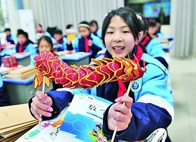 2月26日,湖北省宜昌市秭歸縣實驗小學(xué)學(xué)生展示寒假期間制作的手工作品。