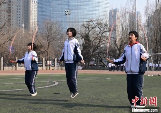 圖為沈陽市第一三四中學(xué)濱河路分校學(xué)生在上體育課。中新網(wǎng)記者 于海洋 攝