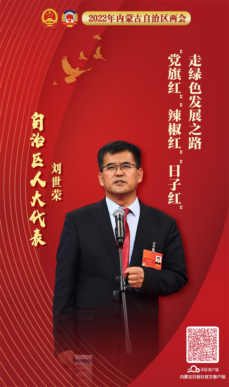 從昔日的沙窩窩到成為如今遠(yuǎn)近聞名的美麗鄉(xiāng)村,自治區(qū)人大代表、鄂爾多斯市達拉特旗展旦召蘇木道勞村黨支部書記、村委會主任劉世榮和大家分享了23年來,道勞村是怎樣推動農(nóng)畜產(chǎn)品生產(chǎn)基地優(yōu)質(zhì)高效轉(zhuǎn)型,走出一條符合道勞實際的綠色發(fā)展之路的。他用“三個紅、一個綠”描述了今天的道勞村,即“黨旗紅”“辣椒紅”“日子紅”,走綠色發(fā)展之路。