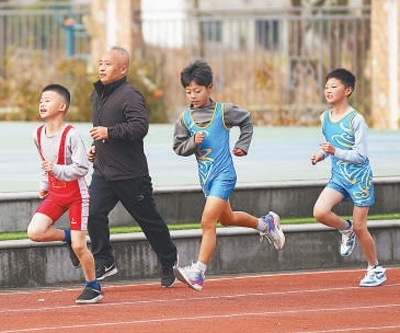 朱志輝帶著學(xué)生跑步。