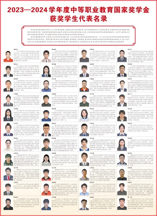 經(jīng)過(guò)嚴(yán)格選拔和評(píng)審,全國(guó)約2萬(wàn)名中職學(xué)生榮獲2023—2024學(xué)年度中等職業(yè)教育國(guó)家獎(jiǎng)學(xué)金。以下100名學(xué)生是中等職業(yè)教育國(guó)家獎(jiǎng)學(xué)金獲獎(jiǎng)學(xué)生中的優(yōu)秀代表。希望全國(guó)中職學(xué)生以他們?yōu)榘駱?,愿學(xué)技能、學(xué)好技能,努力將自己鍛造成為新時(shí)代的高素質(zhì)技術(shù)技能人才、能工巧匠、大國(guó)工匠,在推進(jìn)強(qiáng)國(guó)建設(shè)、民族復(fù)興偉業(yè)中展現(xiàn)青春作為、彰顯青春風(fēng)采、貢獻(xiàn)青春力量,奮力書(shū)寫(xiě)為中國(guó)式現(xiàn)代化挺膺擔(dān)當(dāng)?shù)那啻浩隆?/p>
