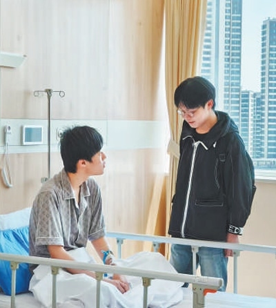 參加補(bǔ)考后,姜昭鵬的腳步格外輕快?!鞍l(fā)揮還可以。我是帶著大家的期待走進(jìn)考場(chǎng)的,這對(duì)我來說有著特殊的意義?!笨纪暝嚕样i馬上去探望同學(xué),兩人見面,相視而笑?!拔覀兗s好了,等他康復(fù),找地方吃頓飯?!苯样i說。