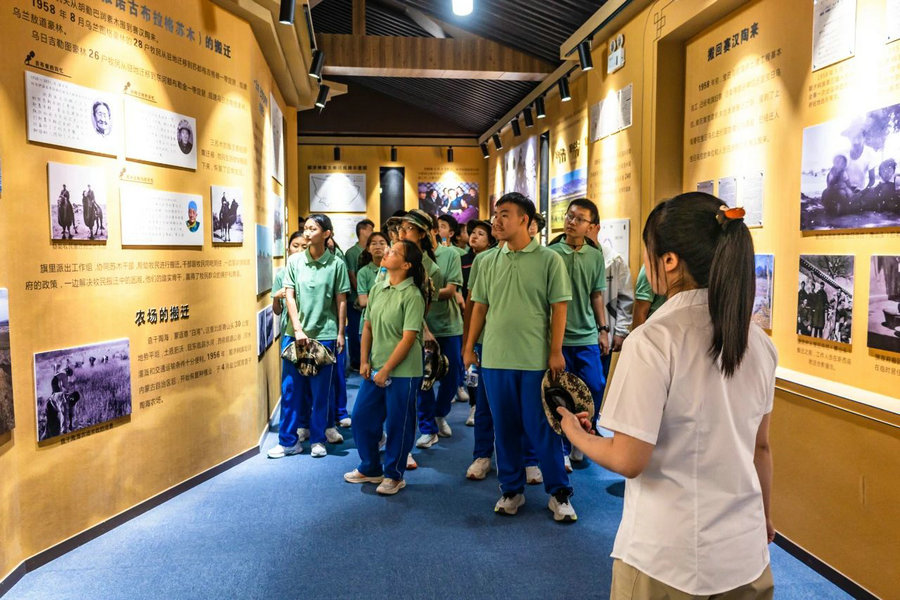 在寶日烏拉黨政機(jī)關(guān)舊址,同學(xué)們聆聽講解,了解“最好牧場為航天”的感人往事, 感受老一輩建設(shè)者們在風(fēng)沙中對祖國的赤誠。烏海市第十中學(xué)胡林濤說:“聽了‘最好牧場為航天’的故事,我真正懂得了什么是舍小家為國家。他們帶著牲畜離開世代生活的牧場,沒有一句抱怨,眼里只有對國家的支持,這種家國情懷太打動人了,以后我也要把這份擔(dān)當(dāng)記在心里,努力成為對國家有用的人?!?/p>