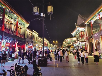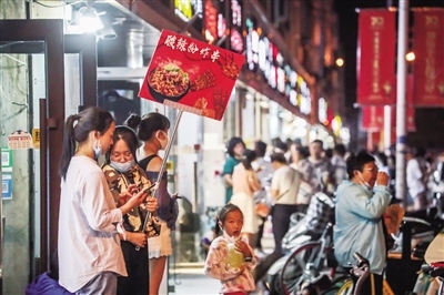 在中山西路,耀眼的霓虹燈點(diǎn)亮了城市最繁華的商業(yè)區(qū),人們摩肩接踵,這里聚集了更多的年輕人,他們一手緊握手機(jī),一手拎著美食,眼睛還不停地尋找更新奇的東西?!皼]想到這么多人,感覺比過年的時(shí)候人還多?!薄拔覀兪窃诰W(wǎng)上看到這里開放夜市,所以約幾個(gè)朋友一起過來逛街的,沒想到這么熱鬧。”采訪中,無論是商戶還是市民,都為眼前繁華、熱鬧的場(chǎng)景欣喜。
