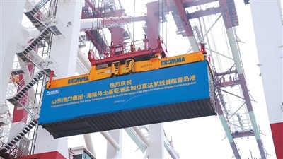 7月10日,伴隨著“穆勒棉蘭”輪汽笛鳴響,山東省港口集團(tuán)·海陸馬士基亞洲孟加拉直達(dá)航線在青島港前灣集裝箱碼頭成功首航。