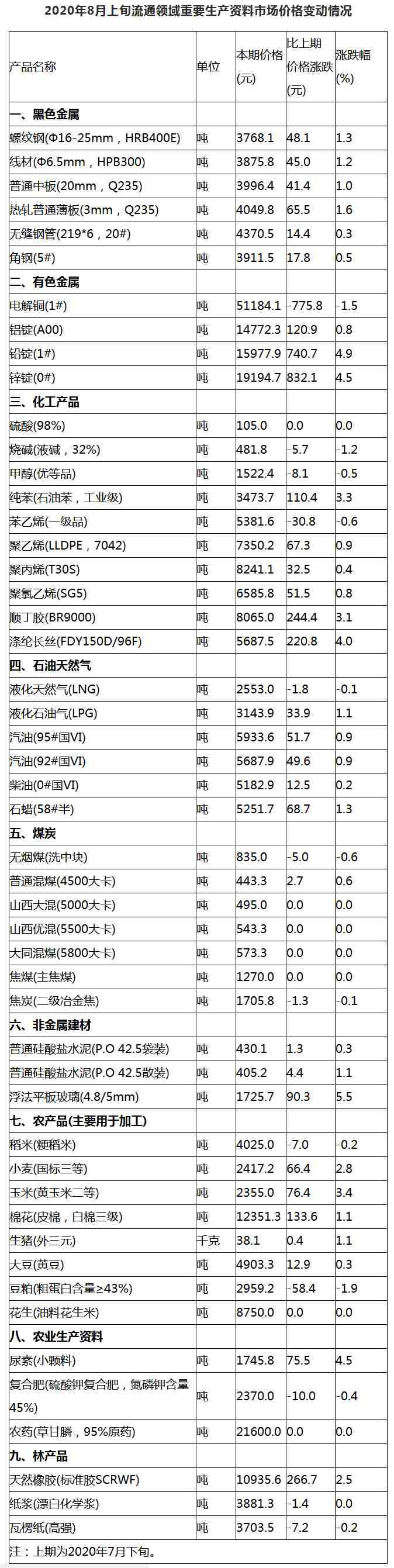 據(jù)國家統(tǒng)計局網(wǎng)站消息,據(jù)對全國流通領(lǐng)域9大類50種重要生產(chǎn)資料市場價格的監(jiān)測顯示,2020年8月上旬與7月下旬相比,31種產(chǎn)品價格上漲,11種下降,8種持平。其中,生豬(外三元)38.1元/千克,與7月下旬相比上漲0.4元,漲幅1.1%。