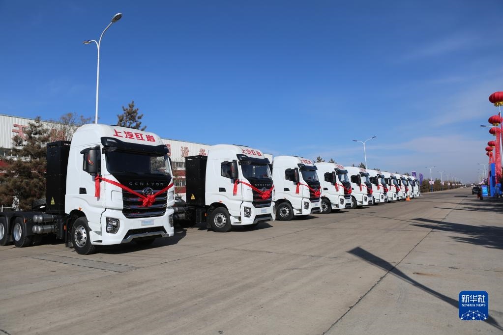 上汽紅巖鄂爾多斯基地天隆工廠的首批投產(chǎn)車輛。(受訪者供圖)