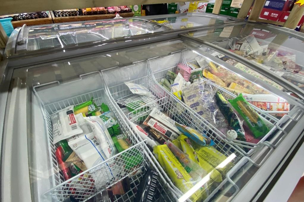這是記者拍攝的雪糕貨柜,各品牌雪糕品種繁多,但貨柜沒有標價。新華社記者 彭子洋 攝