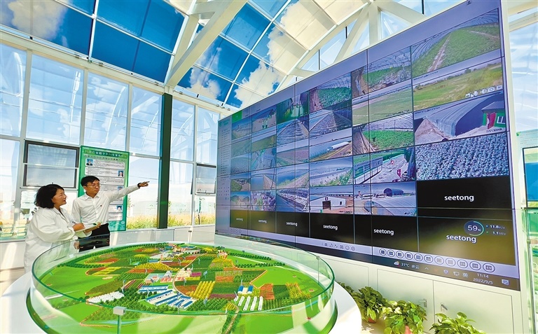 近日,巴彥淖爾市杭錦后旗二道橋鎮(zhèn)鄉(xiāng)村振興設(shè)施農(nóng)業(yè)產(chǎn)業(yè)園區(qū)工作人員正在記錄現(xiàn)代農(nóng)業(yè)數(shù)字平臺監(jiān)測數(shù)據(jù)。據(jù)悉,該園區(qū)占地2000畝,投資4600萬元,是集智慧農(nóng)業(yè)管理、引黃滴灌示范、集中連片種植等多項功能為一體的現(xiàn)代農(nóng)業(yè)產(chǎn)業(yè)園區(qū)。通過現(xiàn)代農(nóng)業(yè)數(shù)字平臺,進(jìn)行智能管控、農(nóng)產(chǎn)品質(zhì)量檢測、科技培訓(xùn)、遠(yuǎn)程科技指導(dǎo),同時讓更多的農(nóng)戶利用APP與平臺共享數(shù)據(jù)資源,實現(xiàn)田間自動化管理。園區(qū)通過平臺智能管控,今年第一茬種植麒麟西瓜,第二茬計劃種植葉菜類,兩茬畝均效益預(yù)計在2萬元以上。(記者 孟和朝魯 攝影報道)
