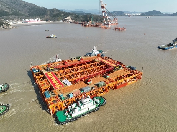 人民網(wǎng)北京2月17日電 (記者王連香)據(jù)中國鐵路上海局集團(tuán)有限公司消息,2月16日13時30分,在寧波至舟山鐵路(以下簡稱甬舟鐵路)西堠門公鐵兩用大橋建設(shè)現(xiàn)場,5號墩自浮式鉆孔平臺,經(jīng)過8個小時的海上浮運(yùn),準(zhǔn)確到達(dá)5號主塔墩墩址處,標(biāo)志著世界最大跨度公鐵兩用大橋和世界最寬跨海大橋主塔墩基礎(chǔ)建設(shè)拉開序幕。