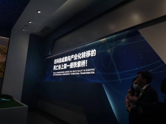 位于科學(xué)城的松山湖材料實驗室,是廣東省第一批省實驗室之一?!霸诳萍汲晒虍a(chǎn)業(yè)化轉(zhuǎn)移的死亡谷上架一座鐵索橋!”這句話就“印”在松山湖材料實驗室的展廳內(nèi)。