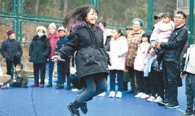 貴州省黔西南布依族苗族自治州安龍縣易地扶貧搬遷安置點(diǎn)春潭街道蘑菇小鎮(zhèn)新市民居住區(qū)舉辦趣味體育運(yùn)動(dòng)會,轄區(qū)居民進(jìn)行了跳繩、拔河比賽等趣味項(xiàng)目,體驗(yàn)運(yùn)動(dòng)的快樂。圖為小朋友正在參加跳繩比賽。劉朝富攝(人民視覺)