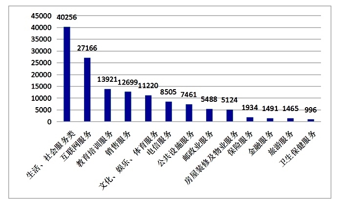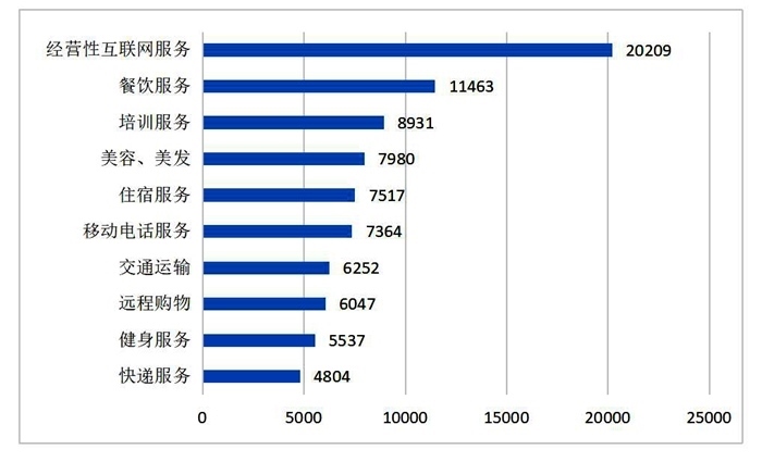 服務(wù)細(xì)分領(lǐng)域投訴前十位(單位:件)來(lái)源:中消協(xié)