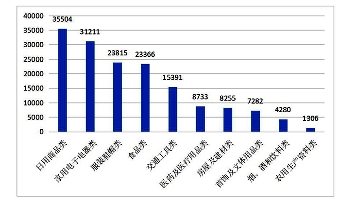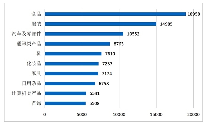 商品細(xì)分領(lǐng)域投訴前十位(單位:件)來(lái)源:中消協(xié)