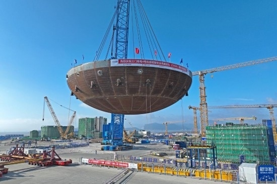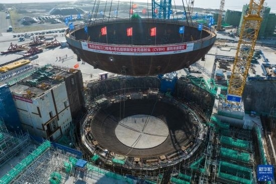5月29日,在浙江省臺州市三門縣,三門核電二期工程4號機組核島鋼制安全殼底封頭順利吊裝就位。這是4號機組核島反應堆廠房吊裝的首個大型模塊,標志著該廠房主體結構施工開始。三門核電二期工程4號機組于3月22日開工,整個二期工程建成投產(chǎn)后,一、二期裝機總容量將達到500萬千瓦,年發(fā)電量預計可達到400億千瓦時。