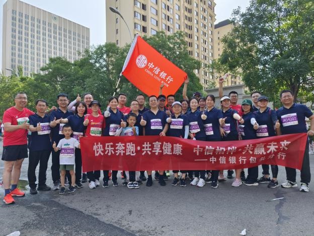 賽場(chǎng)上,在由包頭市當(dāng)?shù)馗鞔笃髽I(yè)組織的健康跑跑團(tuán)中,中信銀行包頭分行組織33名職工和馬拉松愛(ài)好者踴躍參賽,著裝整齊,精神飽滿(mǎn),以實(shí)際行動(dòng)踐行“快樂(lè)奔跑共享健康中信相伴共贏未來(lái)”,展現(xiàn)了中信銀行人奮力拼搏、奮勇向前的精神風(fēng)貌,成為本屆馬拉松賽事上一道亮麗的金融風(fēng)景線。