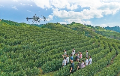 重慶市南川區(qū)在興隆鎮(zhèn)金花村白茶基地開展高素質(zhì)農(nóng)民植保無人機(jī)飛手培訓(xùn)。羅 川攝(人民視覺)