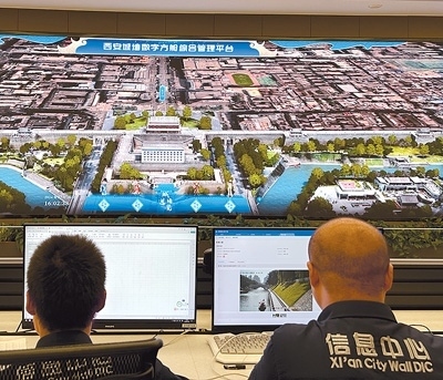 客流量浮動(dòng)、監(jiān)測(cè)點(diǎn)位數(shù)據(jù)變化、AI風(fēng)險(xiǎn)預(yù)警……在西安城墻管委會(huì)信息中心,一個(gè)個(gè)詳細(xì)的實(shí)時(shí)數(shù)據(jù)每天都在大屏幕上滾動(dòng)呈現(xiàn)。輕擊鼠標(biāo),虛實(shí)結(jié)合的數(shù)字“城墻”便出現(xiàn)在人們眼前,從外部的磚瓦彩繪到內(nèi)部的建筑結(jié)構(gòu),透過“數(shù)字方艙”超大屏端頁(yè)面,西安城墻的各種信息映入眼簾。這座“虛擬城墻”便是西安城墻數(shù)字方艙綜合管理平臺(tái)的一部分。近年來,西安城墻運(yùn)用數(shù)字孿生、人工智能、大數(shù)據(jù)、物聯(lián)網(wǎng)、地球物理等前沿技術(shù),與高校、科研院所和骨干企業(yè)共建,打造了一套集文物保護(hù)、文旅運(yùn)營(yíng)、應(yīng)急管理、防汛指揮等功能于一體的“文化遺產(chǎn)數(shù)字化保護(hù)利用綜合解決方案”,實(shí)現(xiàn)了關(guān)鍵技術(shù)突破及文保文旅數(shù)據(jù)的融合共享。