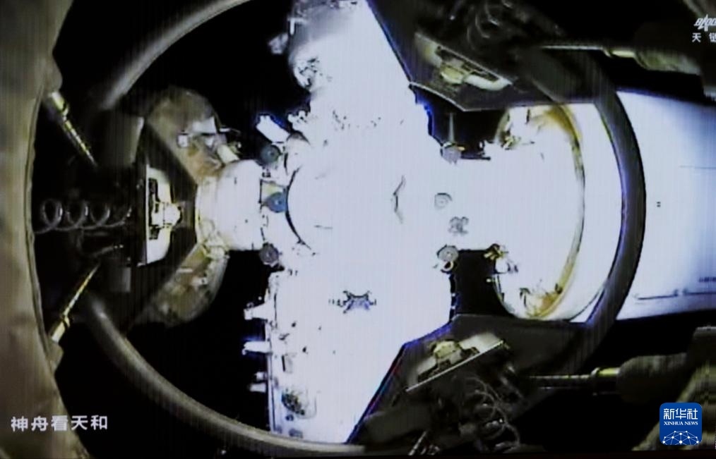 4月24日在北京航天飛行控制中心拍攝的神舟二十號(hào)載人飛船成功對(duì)接空間站天和核心艙畫面。新華社記者 金立旺 攝