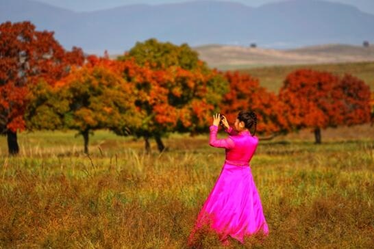 隨著氣溫的下降,楓林草原換上了節(jié)日的盛裝,