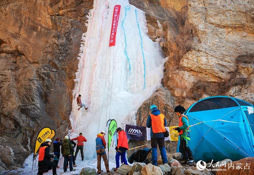 1月16日,由內(nèi)蒙古登山協(xié)會(huì)、內(nèi)蒙古攀巖攀冰協(xié)會(huì)聯(lián)合舉辦的內(nèi)蒙古第七屆攀冰交流大會(huì)在包頭市土默特右旗舉行,來(lái)自?xún)?nèi)蒙古各地的攀冰愛(ài)好者和戶(hù)外運(yùn)動(dòng)愛(ài)好者在晶瑩剔透的冰瀑上挑戰(zhàn)自我,感受極限運(yùn)動(dòng)帶來(lái)的樂(lè)趣。(丁根厚)