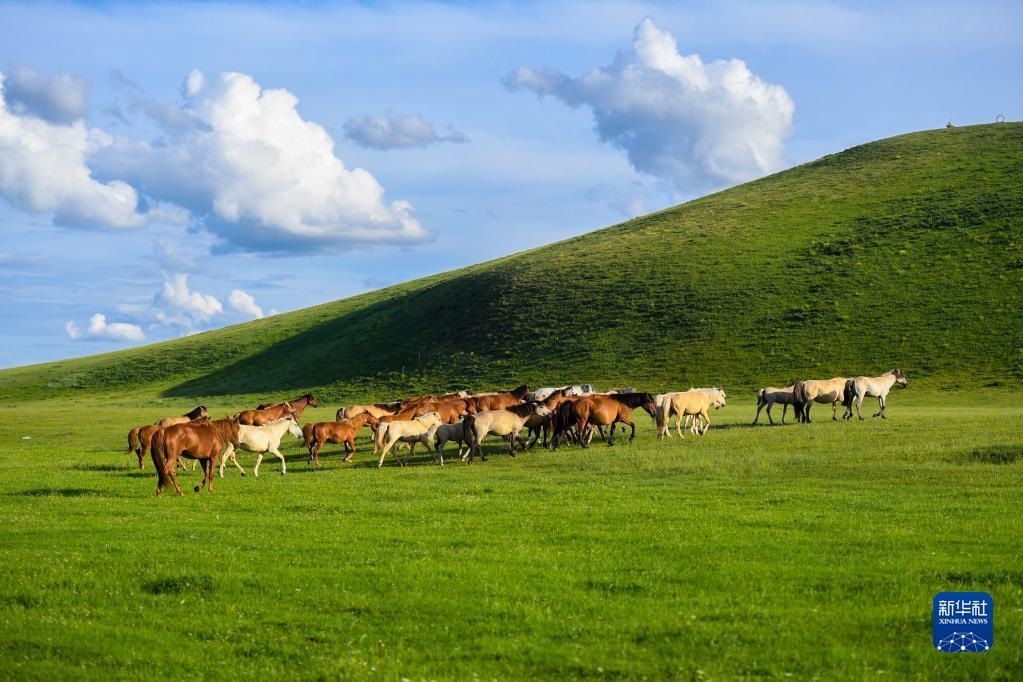 夏日,內(nèi)蒙古錫林郭勒盟西烏珠穆沁旗的草原綠草如茵,風光旖旎。新華社記者任軍川攝