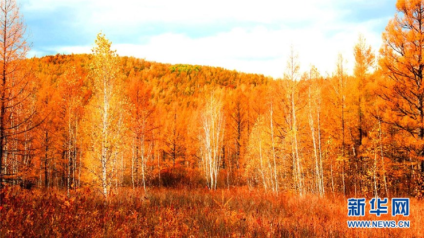 內(nèi)蒙古大興安嶺阿里河國家森林公園內(nèi)的樺林紅葉。(9月28日攝)新華網(wǎng)發(fā)(欒維敬 攝)