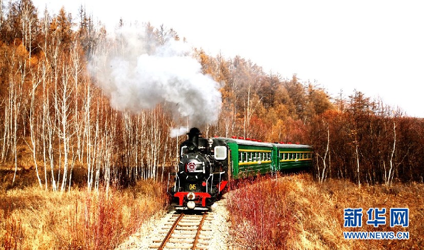 金秋時節(jié),在內(nèi)蒙古大興安嶺阿里河國家森林公園內(nèi),森林蒸汽機(jī)小火車帶領(lǐng)游客穿越秋季美景。(9月28日攝)新華網(wǎng)發(fā)(欒維敬 攝)
