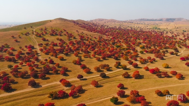 央廣網(wǎng)興安10月18日消息(記者 王秋蕾) 十月的內(nèi)蒙古興安盟科右中旗天高云淡,寒露過(guò)后,隨著氣溫下降,6萬(wàn)余公頃五角楓林換上盛裝,給了生命最炫目的顏色,漫山遍野,層林盡染,如詩(shī)如畫。