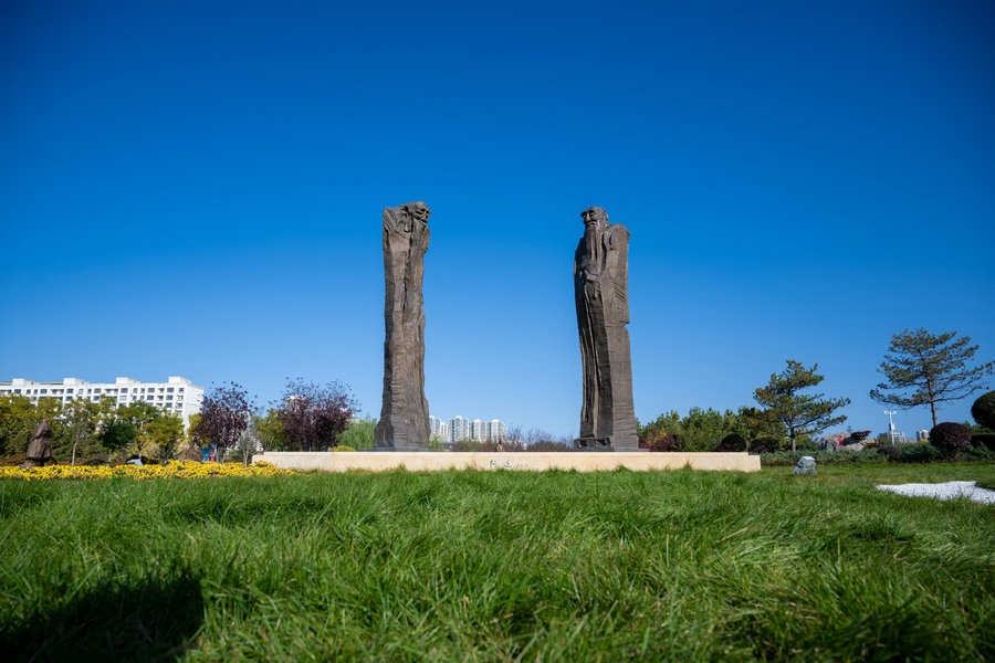 10月18日 呼和浩特國(guó)際雕塑園 《問道》雕塑 作者:吳為山