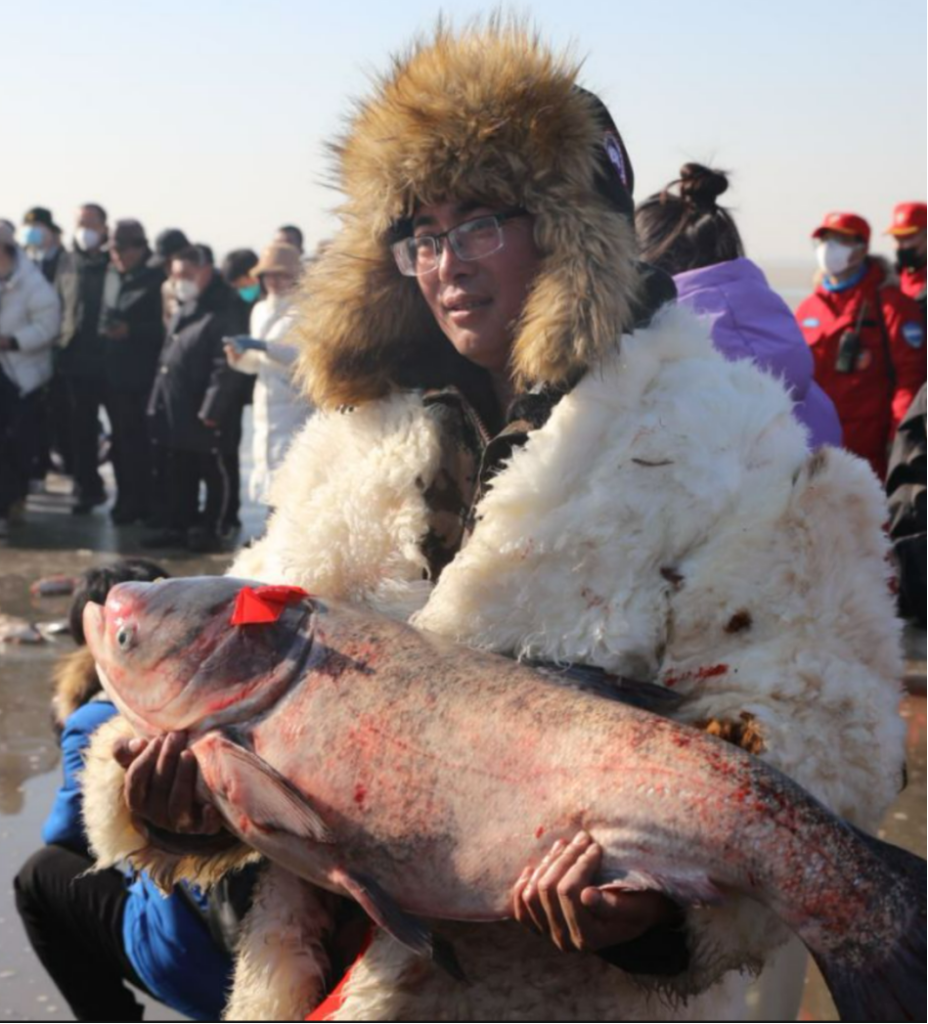 據(jù)了解,哈素海第一屆冰雪旅游節(jié),頭魚現(xiàn)場(chǎng)拍賣出6.8萬(wàn)元的價(jià)格,2024年頭魚拍賣成交價(jià)為40.8萬(wàn)元。
