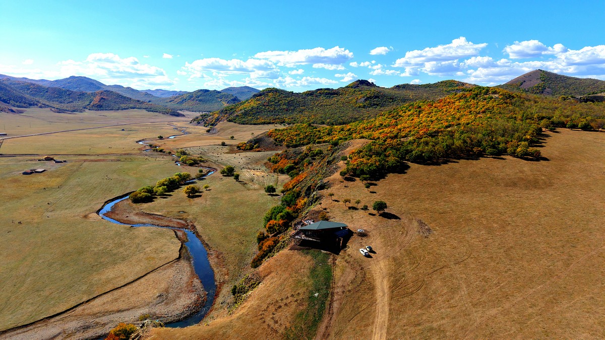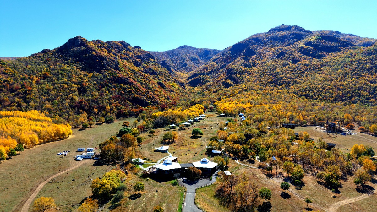 黑羊山旅游度假區(qū),海拔1319米,因這里的山形似黑羊頭得名。金秋時(shí)節(jié),整個(gè)景區(qū)被一片五彩斑斕的世界所籠罩,藍(lán)天、白云、溪流、牛羊群構(gòu)成一幅醉人的畫(huà)卷,恍若進(jìn)入童話(huà)世界。