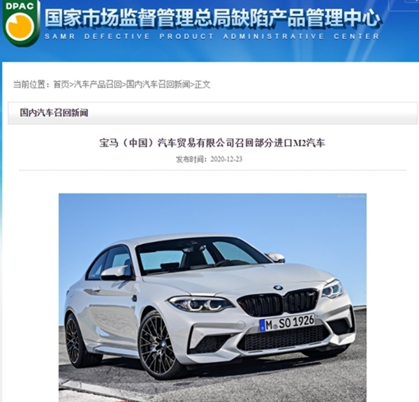 23日,寶馬宣布將自即日起,召回5輛進(jìn)口M2汽車(chē)。