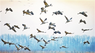 觀鳥(niǎo)者在密云區(qū)拍攝到的灰鶴,系國(guó)家II級(jí)保護(hù)鳥(niǎo)類