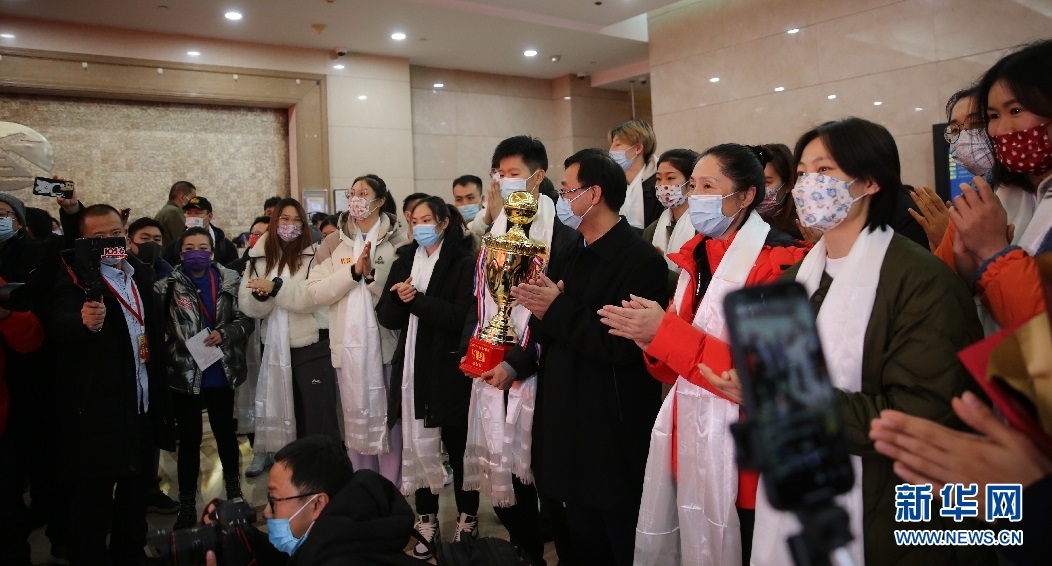 2022年1月3日晚,WCBA衛(wèi)冕總冠軍內蒙古農信女籃載譽歸來,在呼和浩特白塔國際機場受到球迷的熱烈歡迎。