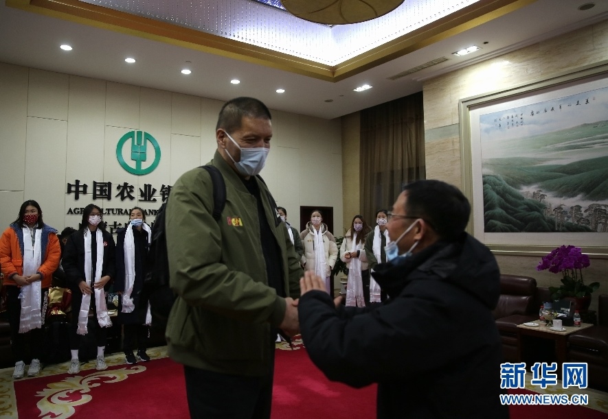 內蒙古籃球協(xié)會主席巴特爾與前來迎接球隊的球迷握手。新華網楊騰格爾攝